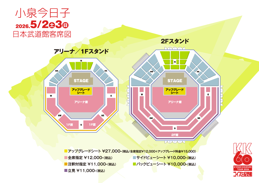 「KK60~コイズミ記念館~ KYOKO KOIZUMI TOUR 2026」に関して5月2日、5月3日に開催する日本武道館公演の客席に関するご案内です。