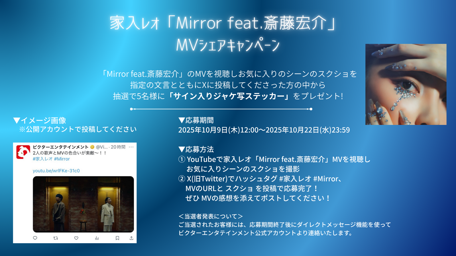 NEW「Mirror feat.斎藤宏介」MVシェアキャンペーン開催決定!