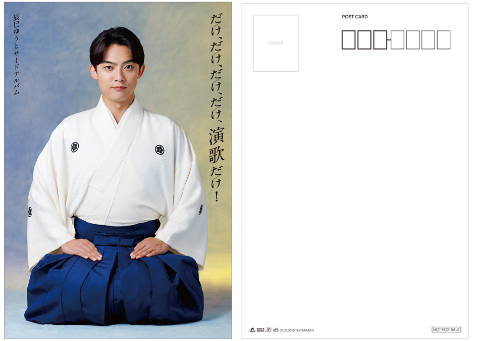 『だけ、だけ、だけ、だけ、演歌だけ!~辰巳ゆうとサードアルバム~』初回限定盤、通常盤どちらでもご予約・ご購入の方に、オリジナルポストカードをプレゼント。