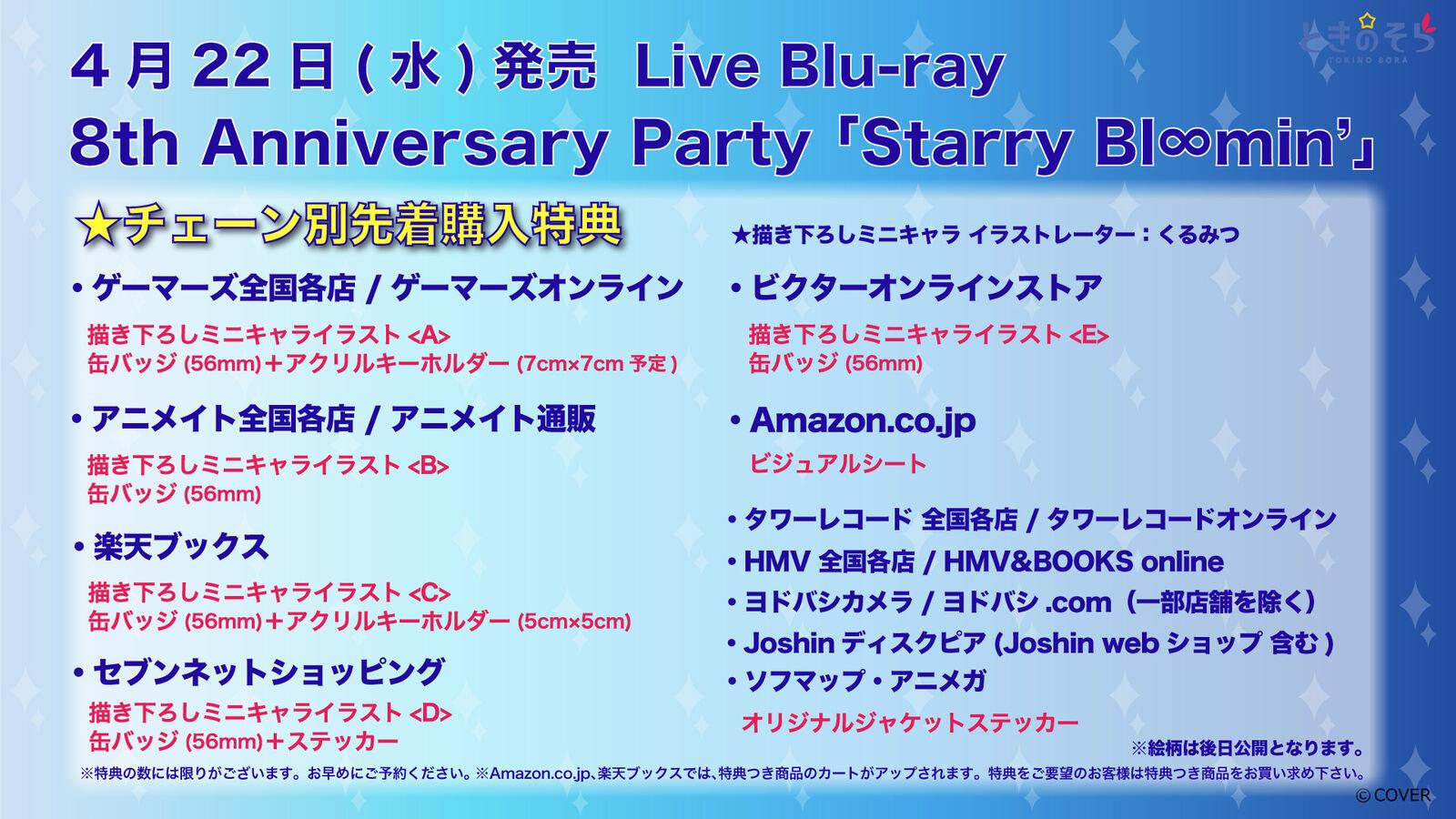 NEWLive Blu-ray『ときのそら 8th Anniversary Party「Starry Bl∞min’」』チェーン別先着購入特典決定!