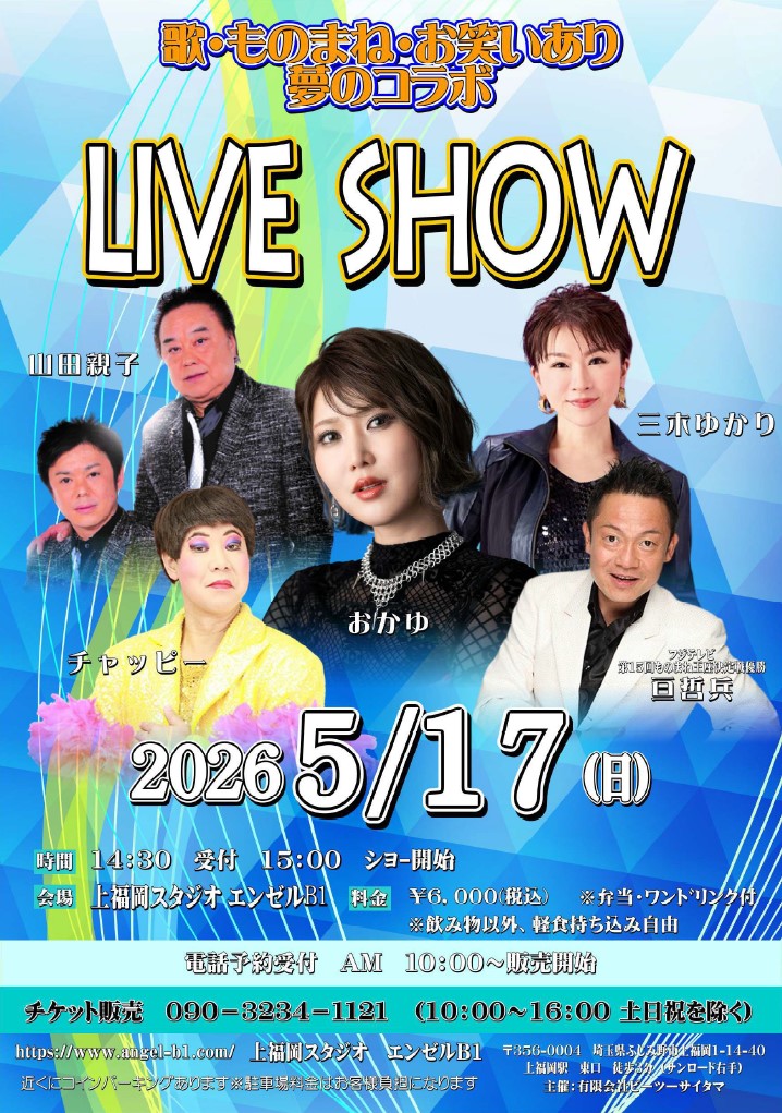 NEW【5/17】LIVE SHOW@埼玉・上福岡スタジオエンゼルB1 出演!