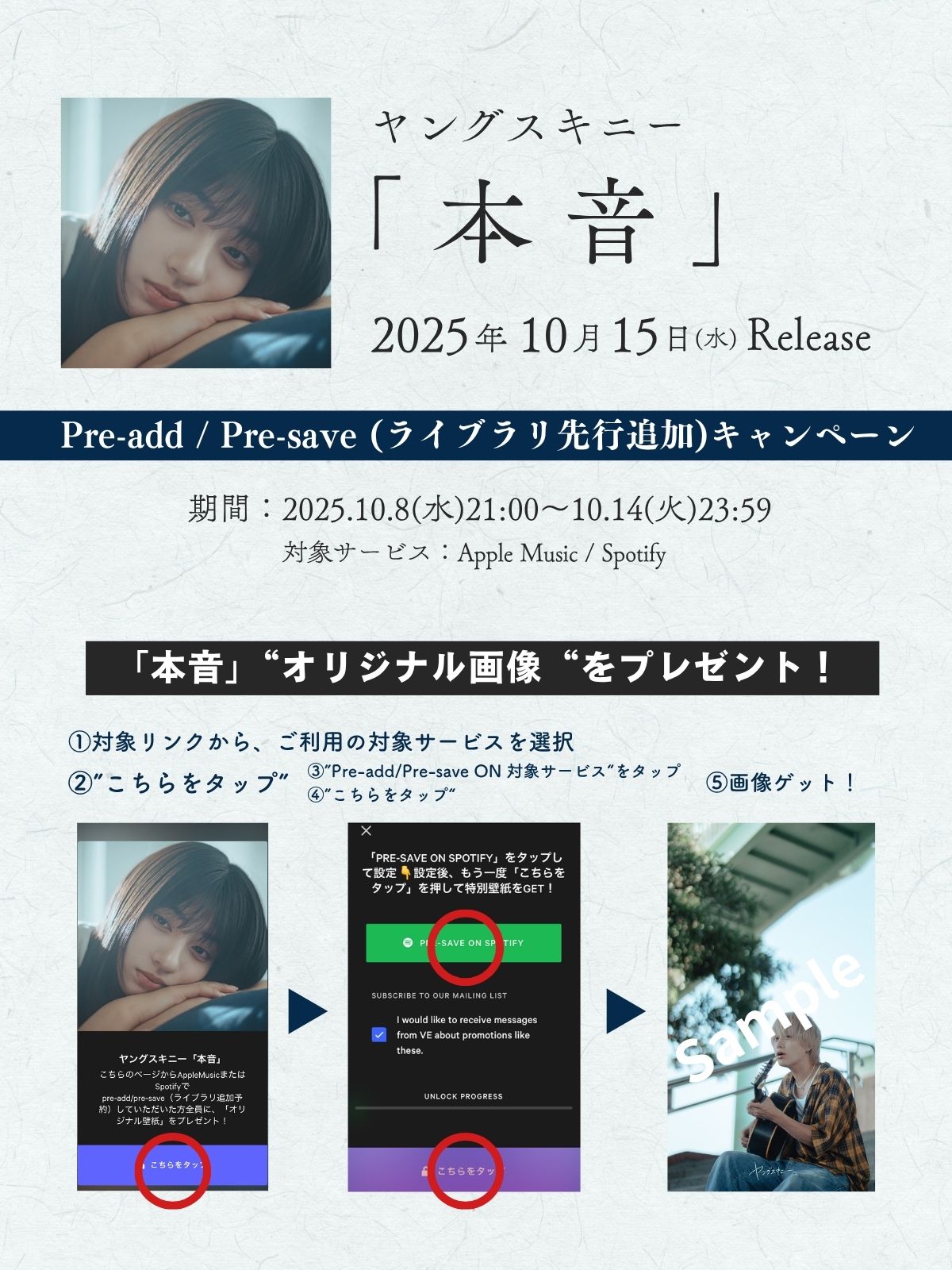 Pre-add/Pre-saveをすると、ここでしかゲットできない”オリジナル画像”がもらえるキャンペーンも実施中!