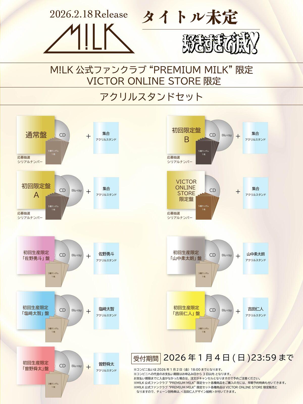 2026年2月18日(水)リリース、M!LKメジャーデビュー後8枚目にして初の両A面シングル「タイトル未定/好きすぎて滅!」”PREMIUM MILK”会員限定セットの販売が決定しました!