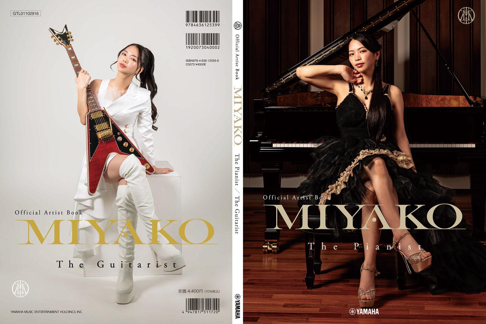 Miyako初となるオフィシャルアーティストブック『Miyako』の発売が決定しました。ピアニストとしてのMiyako、ギタリストとしてのMiyako、どちらの魅力とも掘り下げるため両面表紙を採用。それぞれのロングインタビューを豊富な撮り下ろし写真と共に掲載。所有ギターすべての紹介や、2枚のソロEPよりピアノカバー楽譜を収載するほか、本誌のために特別にやさしくアレンジした「Addicted」のピアノ譜も掲載。