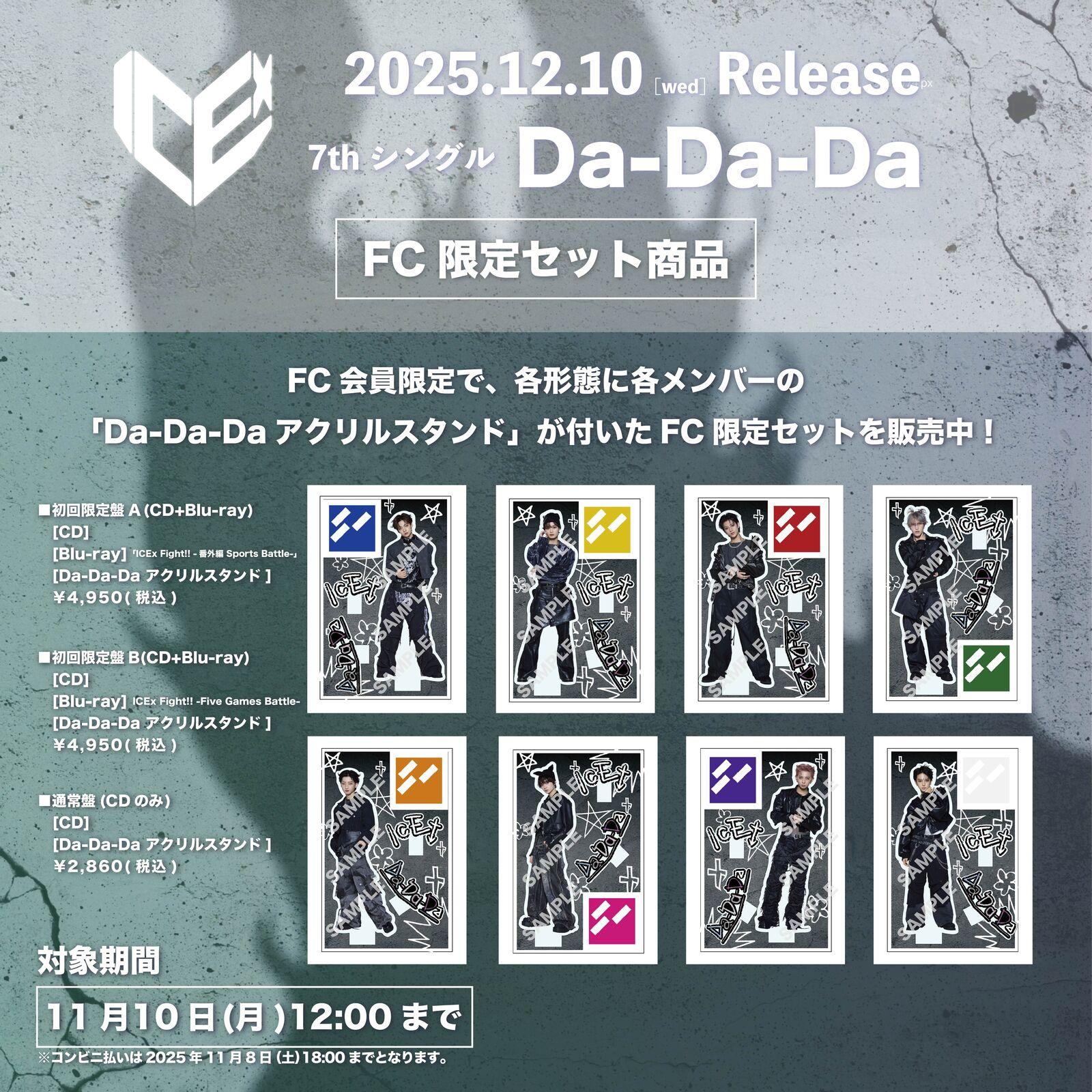 ICEx 12月10日(水)リリース 7thシングル「Da-Da-Da」の発売を記念して、FC限定セットの販売が決定!