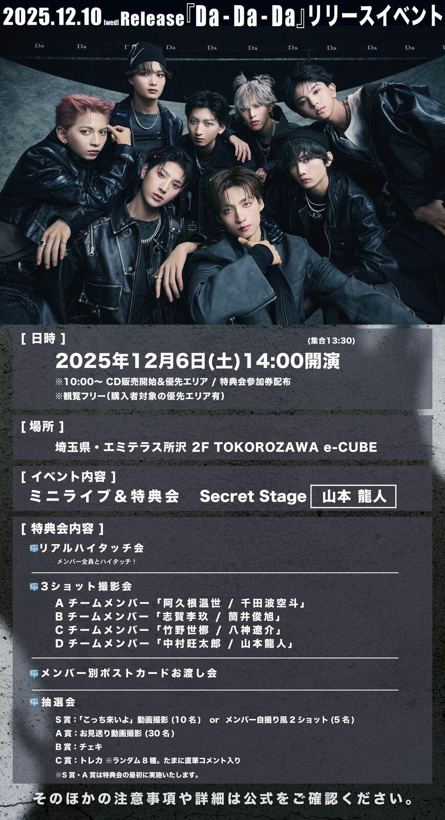 NEW【12/6(土)@埼玉】7thシングル「Da-Da-Da」リリースイベント詳細発表!