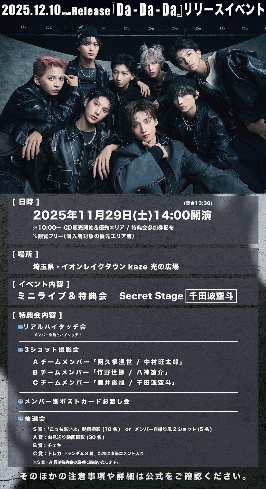 メンバーの山本龍人ですが、体調不良のため出演を予定しておりました「ICEx 7thシングル「Da-Da-Da」発売記念リリースイベント「Secret Stage」@埼玉県・イオンレイクタウンkaze 光の広場」を欠席とさせて頂きます。