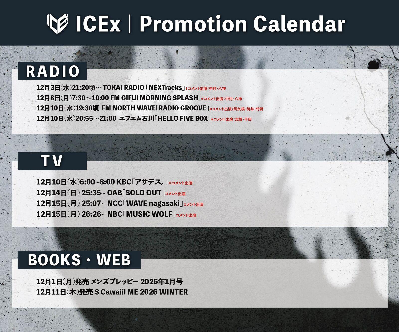 12月3日更新情報!ICExが各メディアに登場し、7thシングル「Da-Da-Da」の発売を盛り上げます!ぜひチェックしてください!