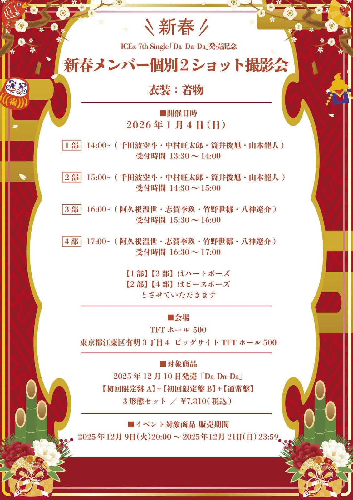 NEW【1/4(日)@東京】『Da-Da-Da』発売記念『新春メンバー個別2ショット撮影会』の開催決定!
