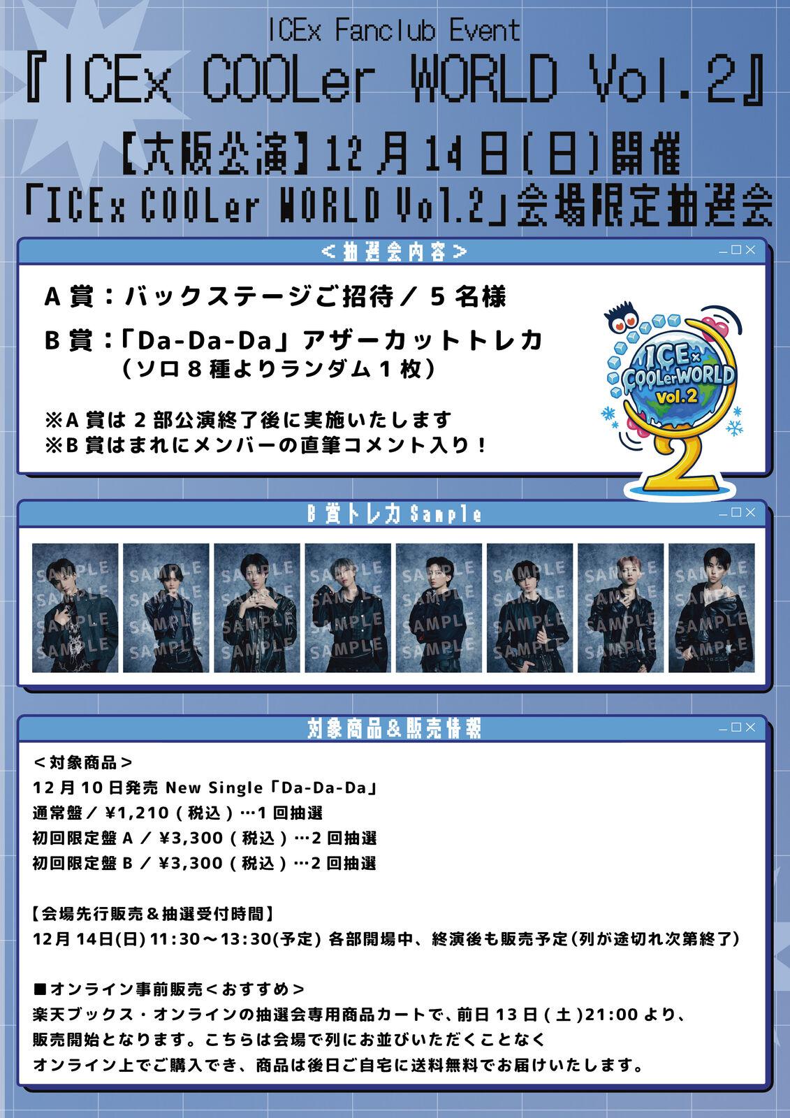 NEW【大阪公演】12月14日(日)開催「ICEx COOLer WORLD Vol.2」会場限定抽選会実施のお知らせ
