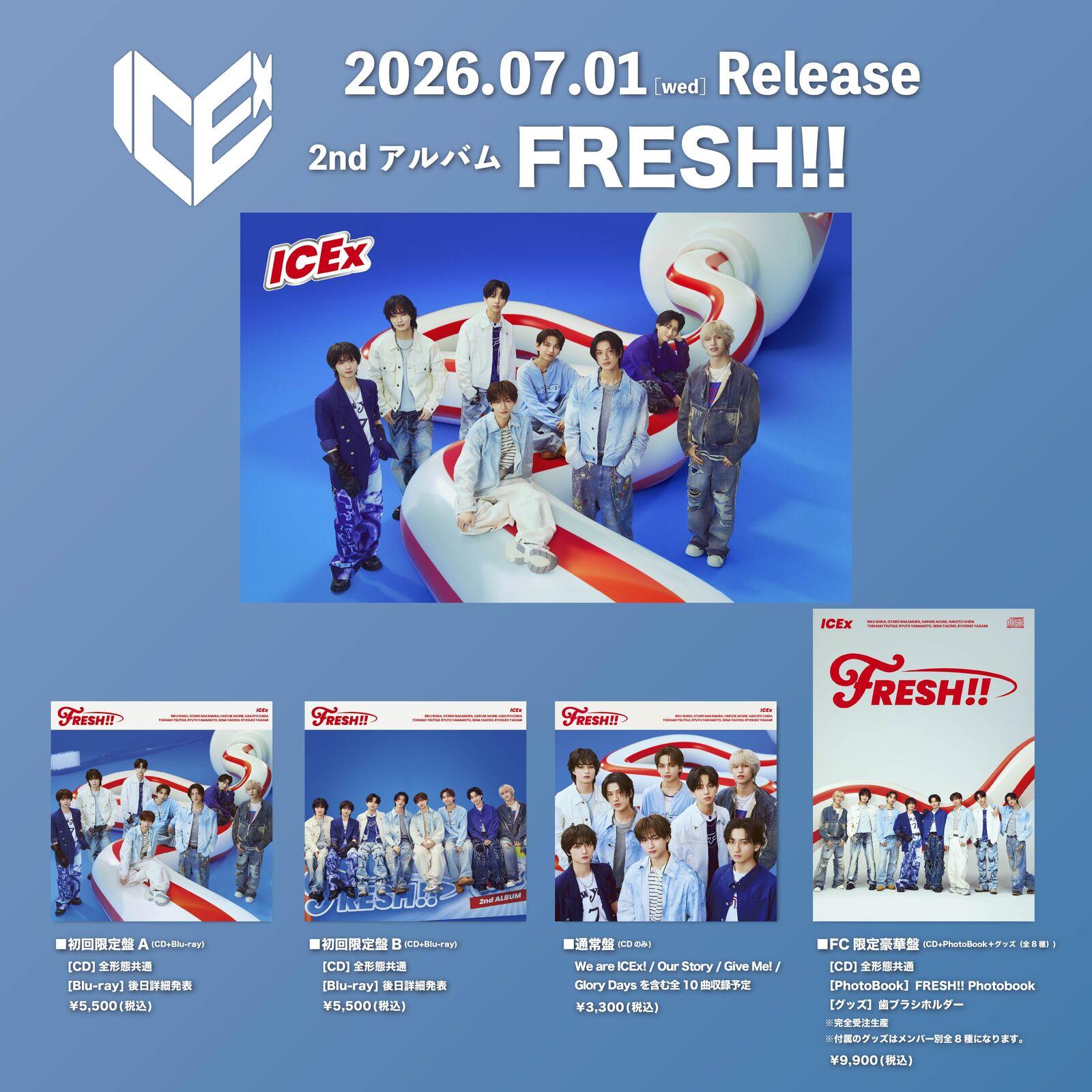 先日公開された新アーティスト写真に続き、ジャケット写真も”FRESH”をテーマに青春感あふれる爽やかなビジュアルと“歯磨き要素”を融合したICExらしいデザインに!