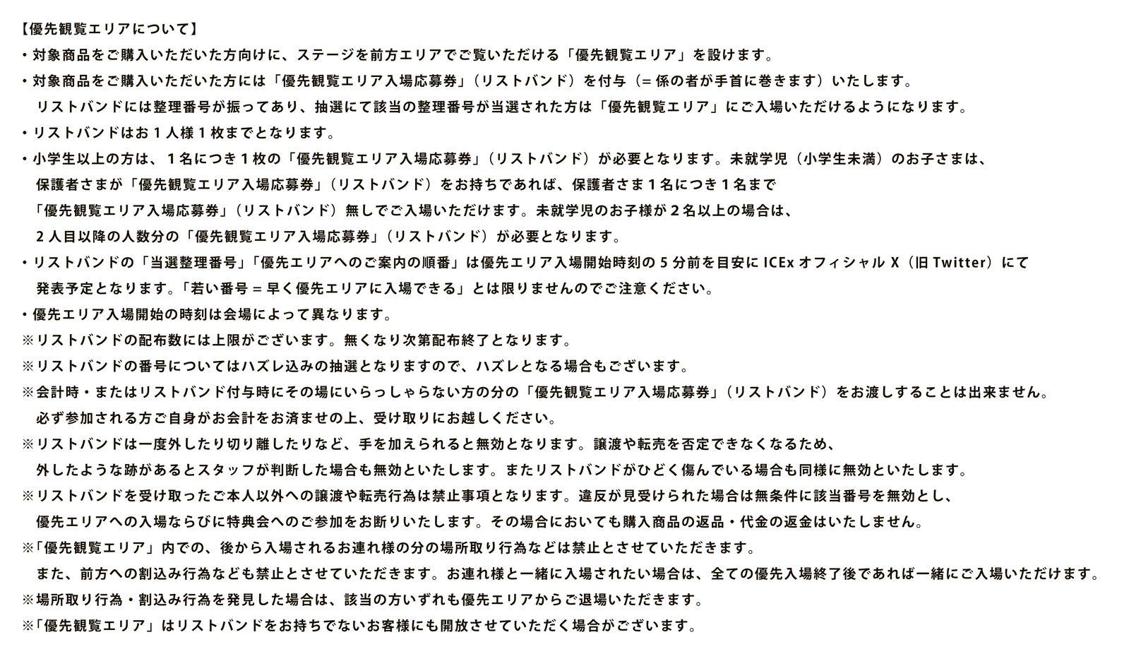 ※「優先観覧エリア入場整理券」「特典券」を紛失・盗難・破損された場合、再発行はいたしませんので、ご注意ください。
