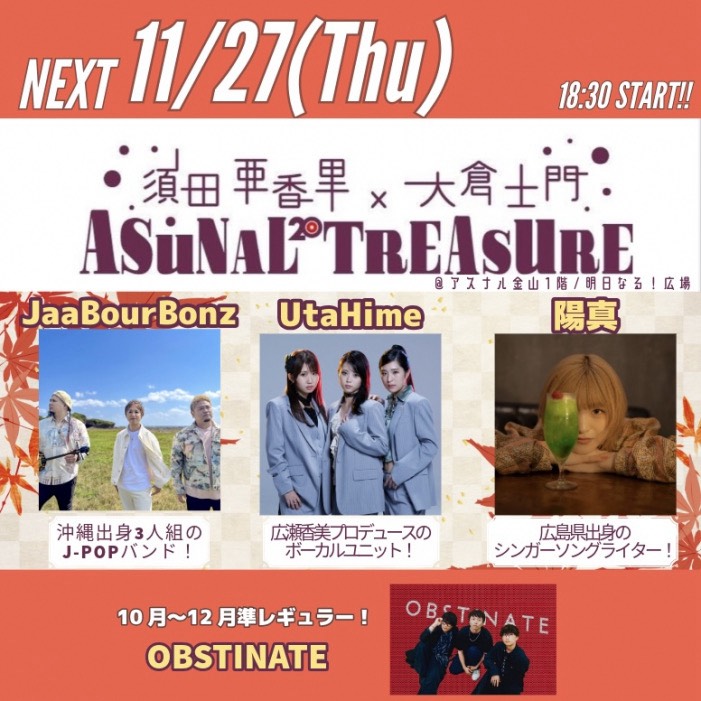 11月27日(木)のFM AICHI「須田亜香里・大倉士門×ASUNAL²⁰ TREASURE」の公開録音にUtaHimeの出演が決定しました。