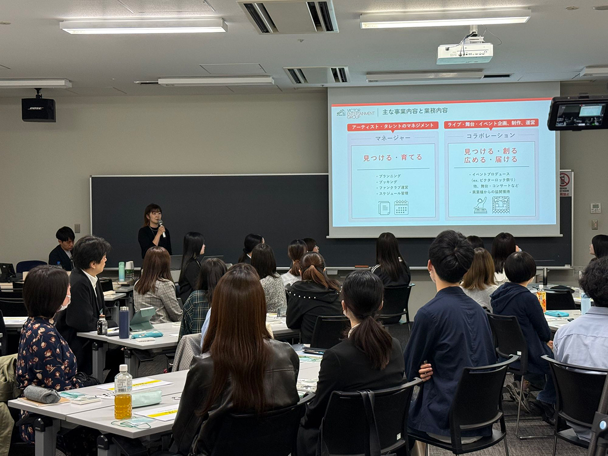 受講後アンケートには、「著作物の定義が自分が本来思っていたものと違い驚きがあった。」「著作権というと一見難しい内容に感じるが、音楽レーベルとアーティストの関係性を用いた解説で分かりやすかった」などの声が寄せられ、「著作権」を身近な題材と実践的な視点を通じて分かりやすく学べる機会となりました。