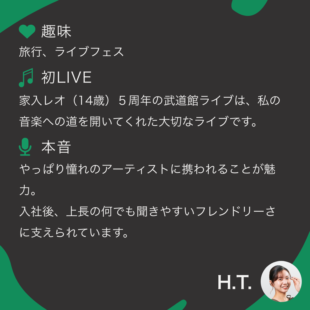 私は中高生のときにガールズバンドのボーカルをやっていて、SCANDALをよく歌っていました。…正直に言うと、うちの所属アーティストだったんだ!と、入社してから知りました(笑)。