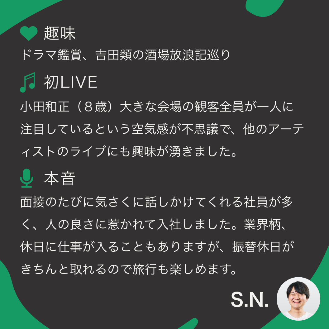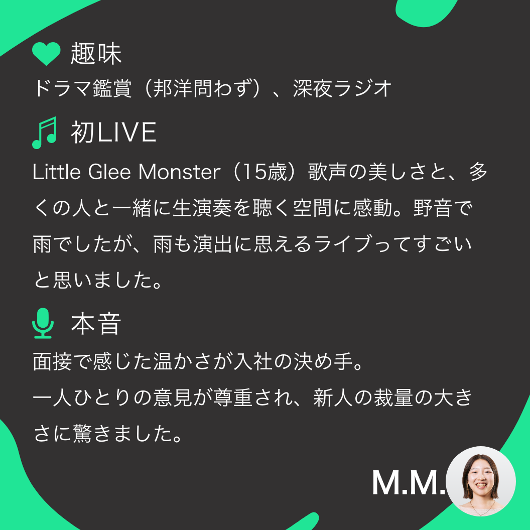 みんな一様に音楽が好きだったと思いますが、なぜ当社を選んでくれたのか、ぜひ聞かせてほしいです。