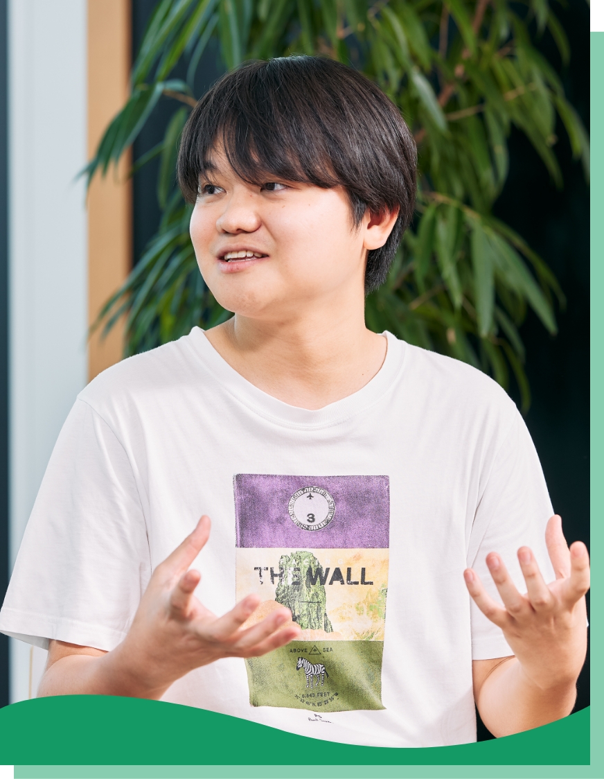 面接で出会った社員のみなさんが「ウェルカム!」と迎えてくれているようなあたたかさがあったんです。自分という個人に興味を持って話を聞いてくれる人が多くて、取り繕う感じがなかった。ここに入社したら自然体でいられるな、と思いました。